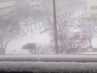 窓からは真っ白景色