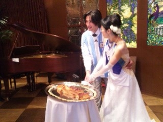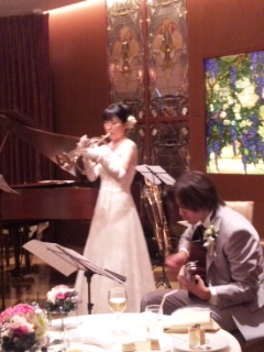 今日は、TKWOトランペット奏者の真美ちゃんと、アルゼンチンのギタリスト、エド君のウェディングパーティでした