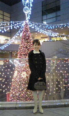オペラシティのイルミネーションの前で