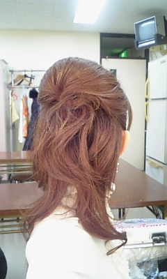 今日のステージでは、甲西吹奏楽団団長さんの娘さんが美容師をされているということで、本番前に楽屋でヘアメイクをしていただきました